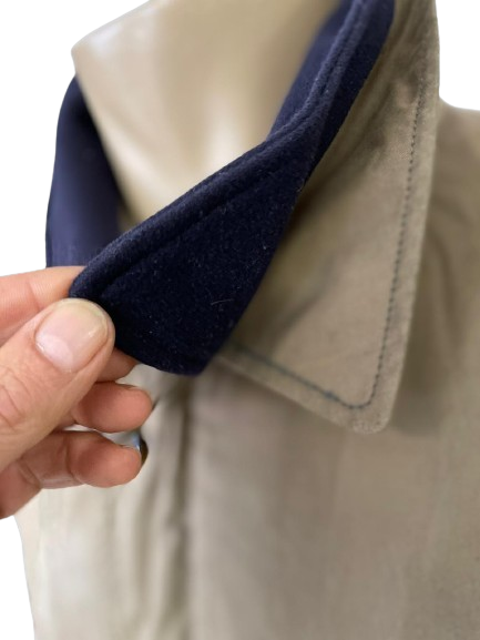 Elegante chaquetón de la prestigiosa marca Burberry, confeccionado en un clásico color beige con cuello en contraste negro, que aporta un toque de distinción y sofisticación.
